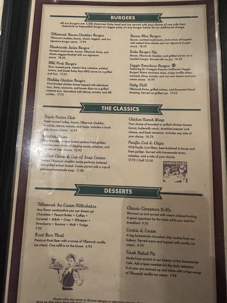 Tillamook cheddar, bacon, classic veggies, and our signature burger sauce
